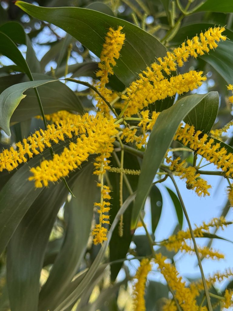 - Bunga kecil, berwarna kuning cerah atau putih, tersusun dalam bentuk bulir (spike) atau kepala (globular), menghasilkan aroma khas dan menarik serangga penyerbuk.
