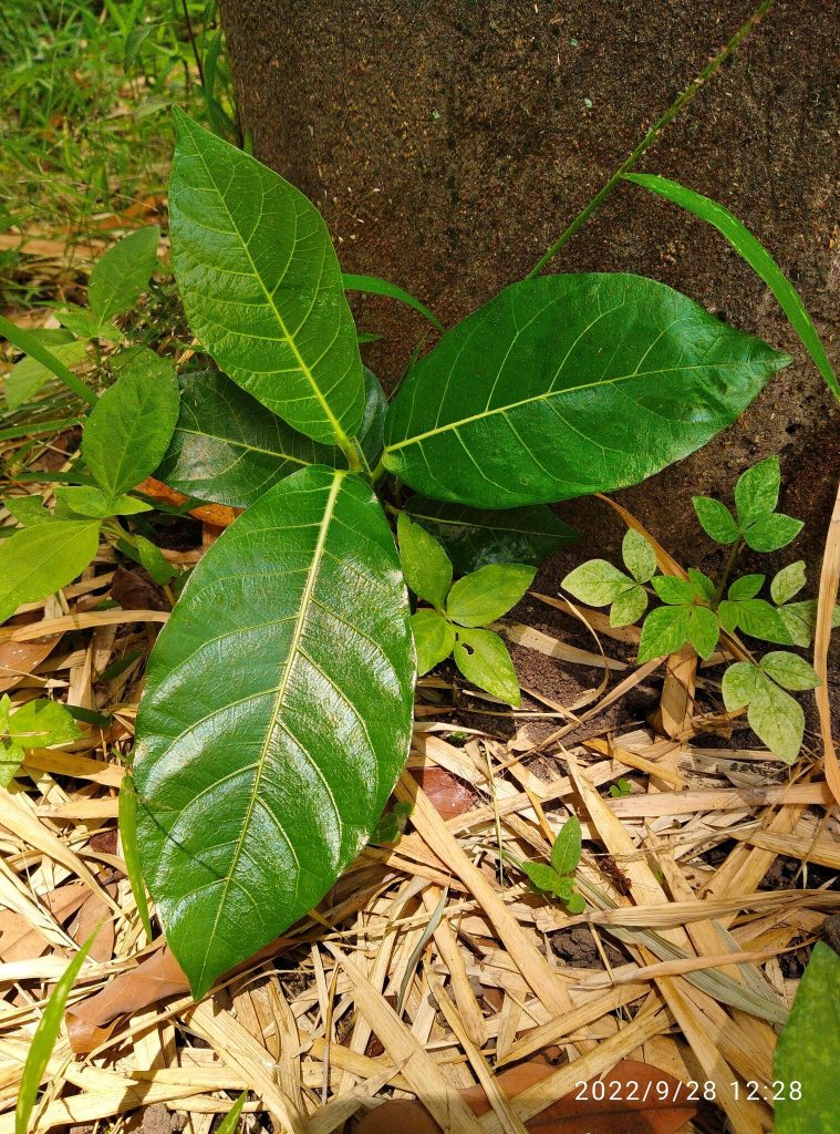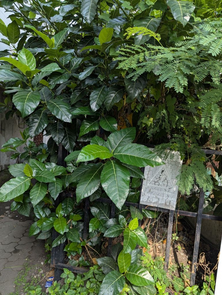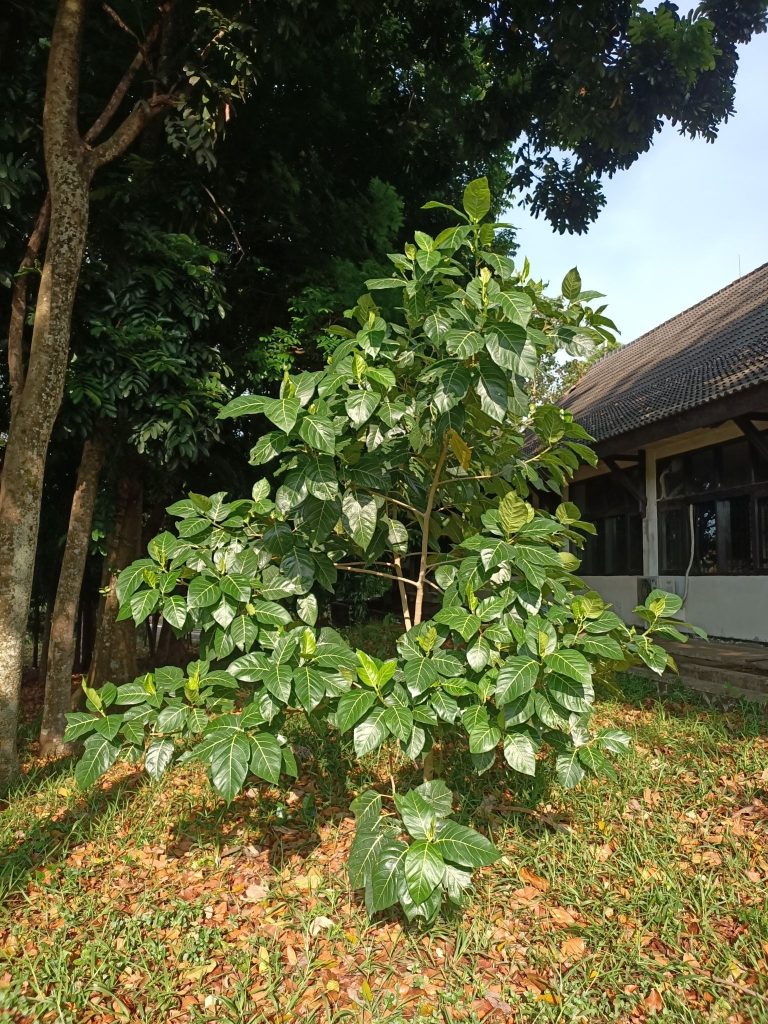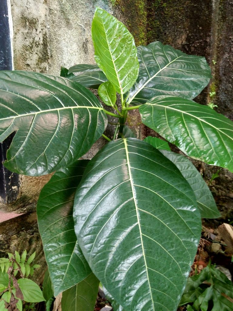 - Daun daun tunggal bertangkai, berukuran besar (hingga 15 x30 cm) yang tersusunan secara spiral (berseling atau berhadapan). Helaian daun berbentuk oval atau bulat telur. Pertulangan daun menyirip, tepi daun rata, warna daun dari atas hijau tua mengkilat dan licin (laevis).. Ujung daun sangat runcing (acutus), pangkal daun membulat (rotundatus). Urat daun putihnya berfungsi seperti “markah jalan” bagi kelelawar di malam hari untuk menemukan buah yang matang.