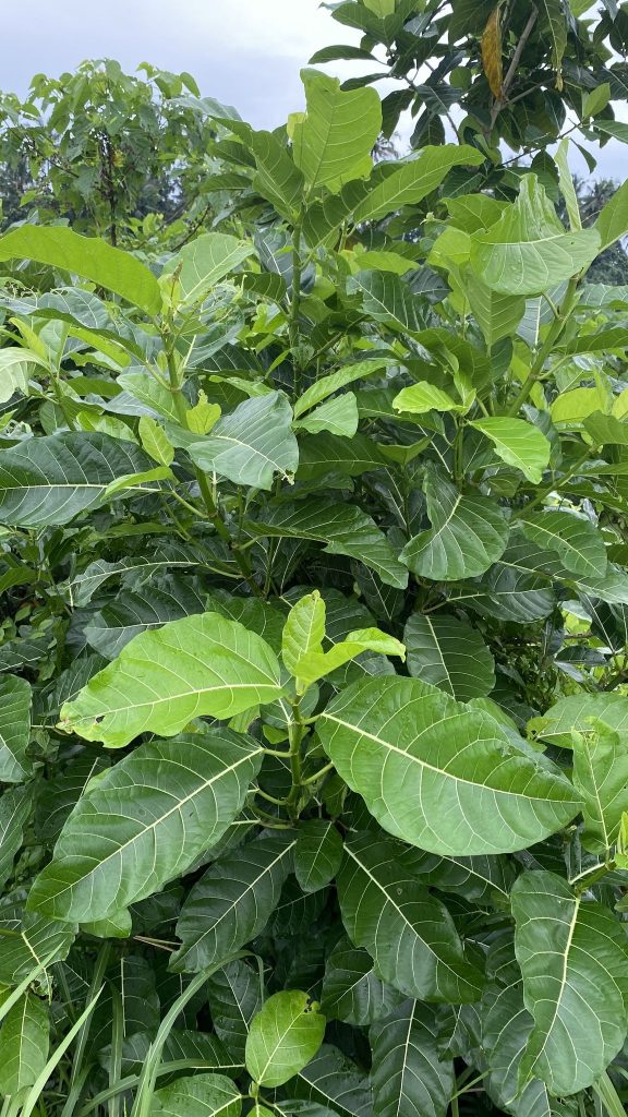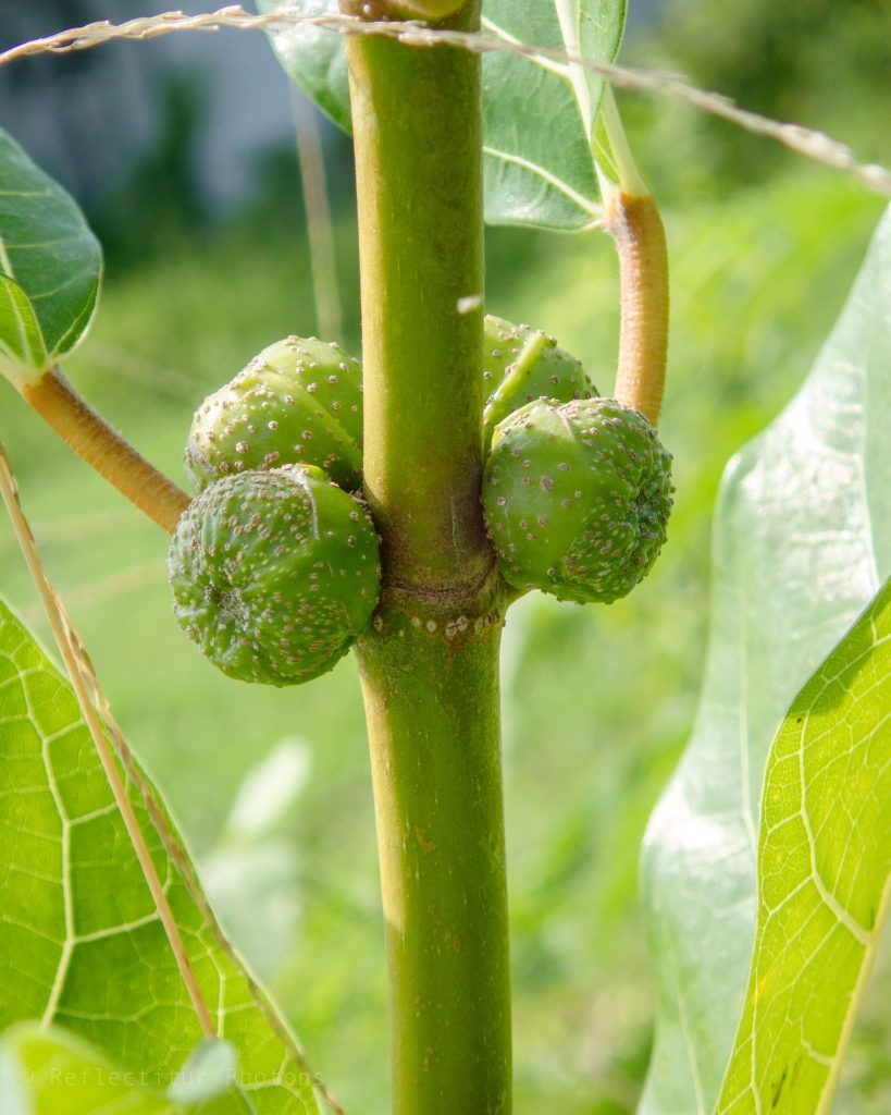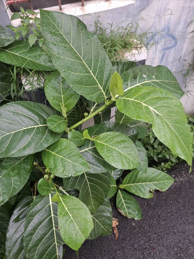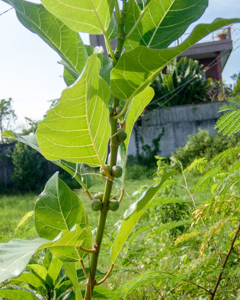 - Batang & Ranting: Batang berkayu yang mengeluarkan getah jika dilukai. Ranting mudanya berongga dan memiliki kelenjar pada buku-bukunya yang sering menarik perhatian semut hitam.