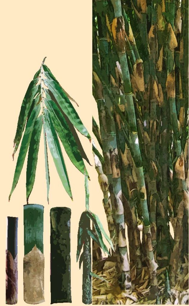 Rebung hijau tertutup bulu coklat dan hitam. Buluh tingginya mencapai 22 m dan lurus. Pelepah batang tidak mudah luruh, tertutup buluh hitam atau coklat.
