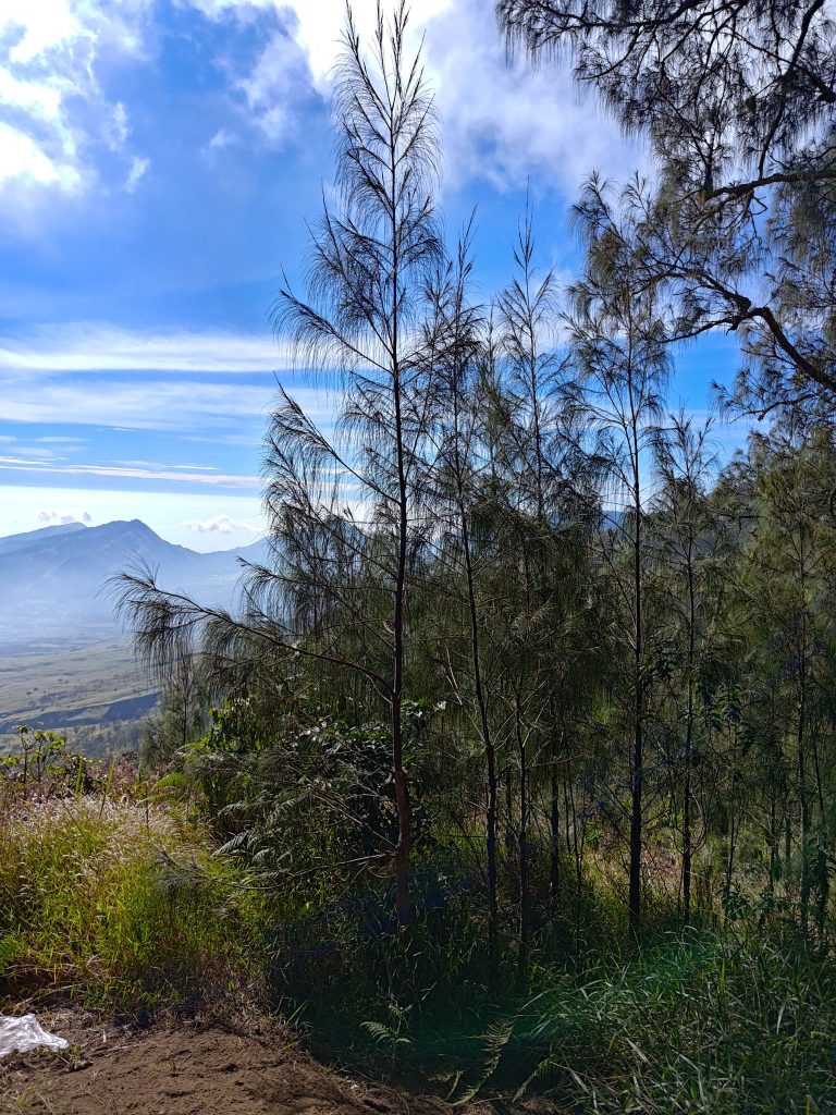 Cemara gunung (Casuarina junghuhniana) termasuk famili Casuarinaceae dan memiliki potensi ekologis tinggi sebagai peneduh jalan, pelindung tanah, dan penyerap karbon. Penanaman cemara gunung di jalur jalan dapat menyerap karbon hingga ±70–90 ton/ha tergantung umur dan kerapatan tanam.