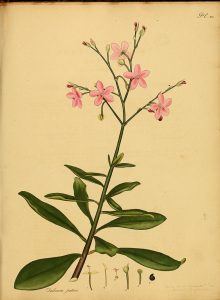 - Bunga : majemuk, bentuk malai, di ujung batang, mahkota lonjong, panjang kurang lebih 4 cm, ungu, benang sari bercabang, ungu.