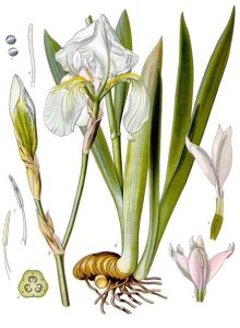 Rimpang atau rizhoma bunga iris disebut orris dan memiliki aroma seperti violet. Namun, untuk mendapatkan aroma terbaik, membutuhkan waktu pengeringan sekitar 3 tahun. Kemudian, ditumbuk dan disuling untuk menghasilkan minyak esensial serta dapat dijadikan campuran parfum.