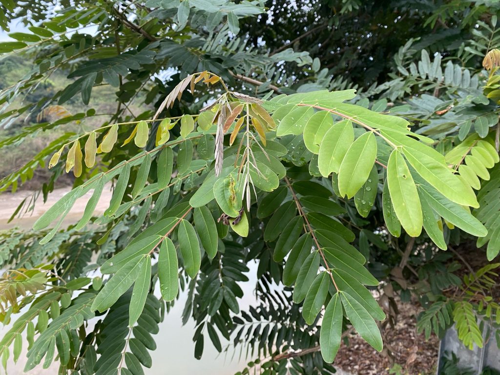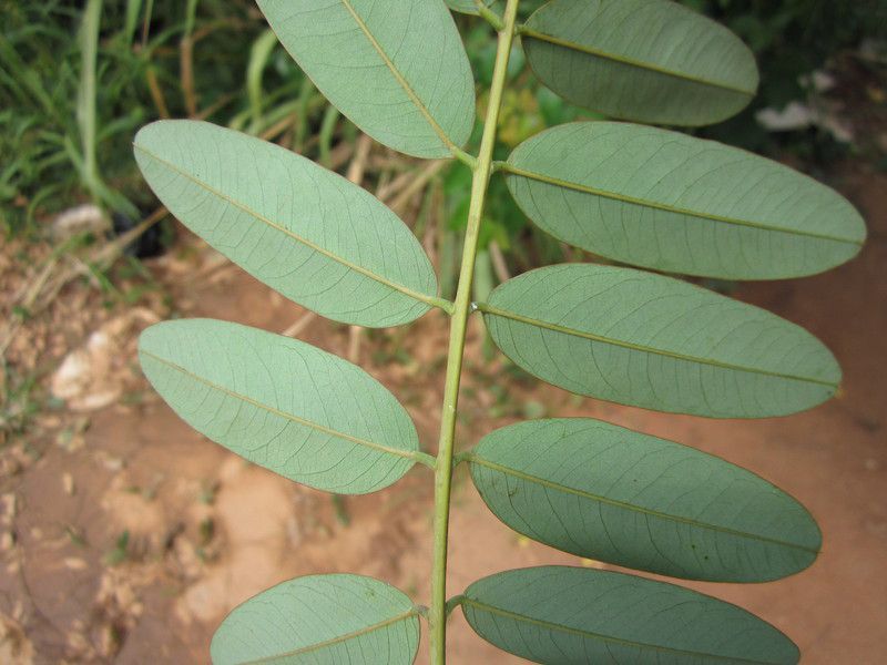• Daunnya menyirip genap, anak daun bentuk oval sampai memanjang, bagian atas daun gundul dan sedikit mengkilat, bagian bawahnya ditumbuhi rambut halus.