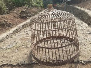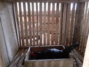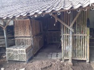 Di pagi hari yang cerah sekitar pukul tujuh pagi, saya berkeliling desa menggunakan motor. Ketika di perjalanan, saya bertemu dengan salah satu warga Dusun Wonotigo yang bernama Bapak Sarwoto (65). Kebetulan, beliau “ngingu pitek” (memelihara ayam). Karena saya penasaran dengan kandang yang biasa digunakan untuk rumah ayam miliknya, saya pun mencari tahu tentang kandang ayam tersebut. Bapak Sarwoto mengatakan, bentuk kandang ayam sangat banyak seperti persegi empat yang ukurannya 80 cm × 80 cm, dan ada juga yang berukuran persegi empat 80 cm × 160 cm. Kandang ayam sendiri dibuat dari “pring apus” (bambu tali) yang sudah dibelah menjadi ukuran 2 cm dan sudah diirati atau diseset. Ada juga kandang ayam yang dijual langsung di pasar maupun di warung pakan ayam dengan harga Rp. 100,00/kotak. Untuk tempat makan dan minum ayam, Bapak Sarwoto menggunakan batok kelapa yang sudah dibuat seperti mangkok. Batok ini bisa dibeli di pasar atau warung pakan ayam serta dapat membuat sendiri. Untuk harga batok kelapa biasa dijual dengan harga Rp. 3.000,-/biji. Terdapat juga kurungan ayam yang biasanya digunakan untuk menjemur ayam dipagi hari. Kurungan ayam ini dijual di pasar atau warung pakan ayam dengan harga Rp. 60.000,-/biji (th 2021).