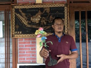 Harapan saya untuk pemerintah terkait (Pemerintah Desa, Dinas Lingkungan Hidup, Kemenparekraf), silakan meninjau atau menilai kreasi saya. Untuk perajin seperti saya, mendapat perhatian dengan cukup dilihat atau berikan dukungan, saya sudah sangat senang. Untuk generasi muda, mari kita jaga bumi ini. Bumi bukanlah tinggalan dari nenek moyang tetapi merupakan bekal untuk anak cucu kita. Saya sudah melakukan, kapan anak-anak muda mau melakukan seperti saya? For green Indonesian clean!”