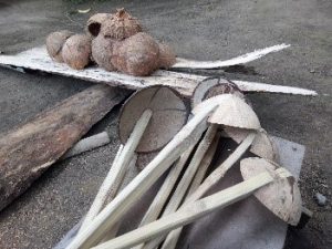 Bahan yang digunakan untuk membuat irus yaitu bambu dan batok kelapa. Bambunya beliau dapat dengan membeli dari warga sekitar. Untuk batok kelapanya didapat dari kelapa yang dimanfaatkan santannya. Alat yang digunakan untuk membuat irus yaitu bendo, pangot, dan gergaji.