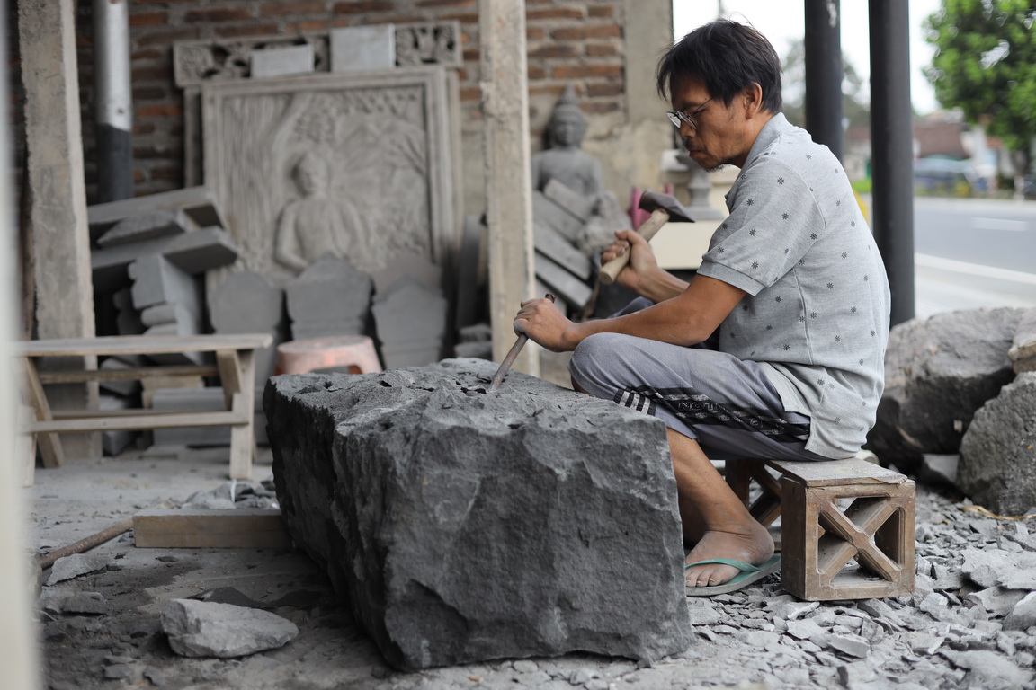 Pak Muslih (50 tahun) adalah seorang pemahat batu yang berasal dari Desa Wringinputih. Batu-batu yang beliau gunakan diperoleh dari Gunung Merapi dan diolah sendiri untuk dipahat. Beliau membuat pahatan batu sesuai dengan pesanan pelanggannya dan cobek untuk dijual di tokonya. Pak Muslih menjual patung, batu nisan, cobek, lumpang, asbak, kap lampu, pot bunga, hiasan rumah, dan lain-lainnya sesuai pesanan pelanggannya. Untuk pembuatan patung sendiri, beliau membutuhkan waktu kurang lebih satu bulan dengan dibantu oleh istrinya.