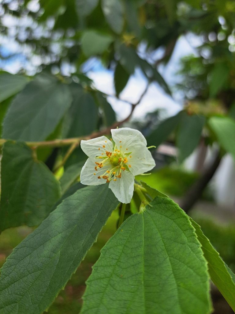 - Bunga memiliki mahkota berwarna putih, kelopak warna hijau, bertangkai panjang, terletak di ketiak sebelah kanan atas daun.Mahkota berbentuk bulat telur, bertepi rata, jumlah benang sari nya banyak antara 10-100 belai.