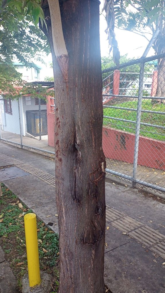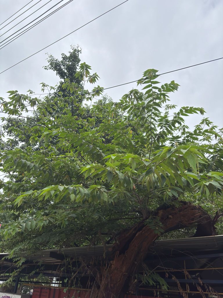 - Batang tumbuhan ini berkayu, tegak, bulat dan memiliki percabangan simpodial. Percabangannya mendatar, menggantung ke arah ujung, berbulu halus. Percabangannya mendatar dan membentuk naungan yang rindang.