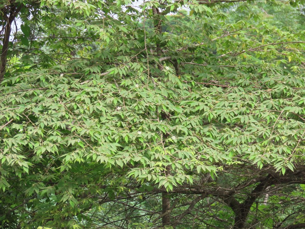 - Ranting tanaman diselimuti oleh rambut biasa yang halus dan oleh rambut kelenjar. Daunnya letaknya berselang-seling pada cabang.