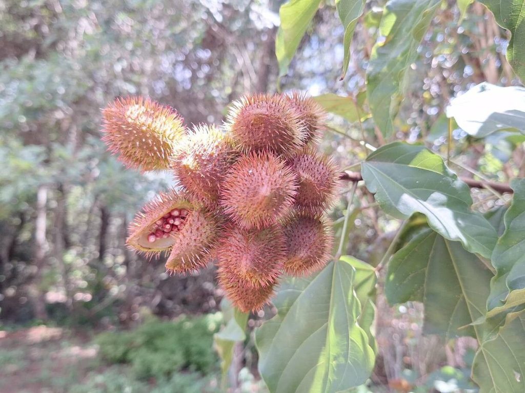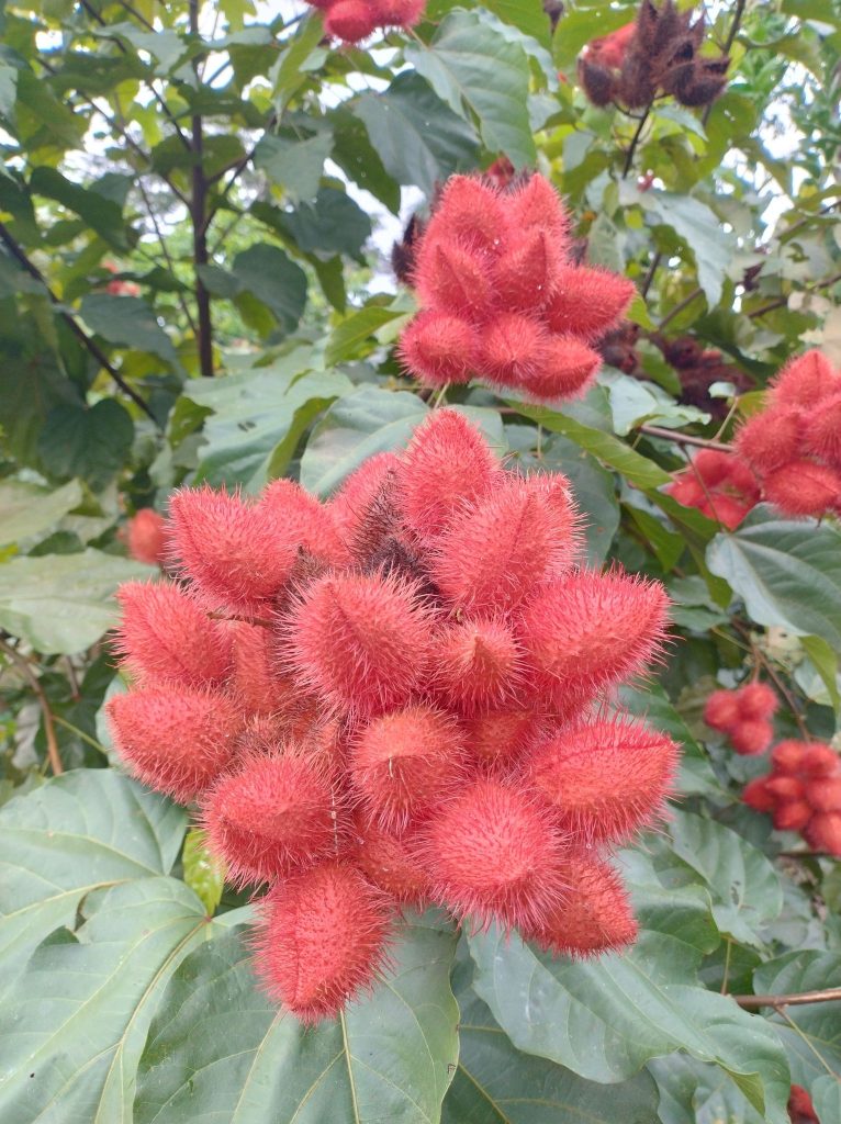 Keunikan Kesumba ini adalah buahnya berbentuk bulat telur dan tertutup oleh rambut sikat warna merah tua menyala. Sekilas bentuk dan warna buah Kesumba ini mirip dengan buah rambutan, namun tidak dapat dimakan. Warna buah Kesumba sebenarnya bervariasi yang dipengaruhi oleh elevasi. Biasanya warna semakin merah dengan semakin tingginya elevasinya.