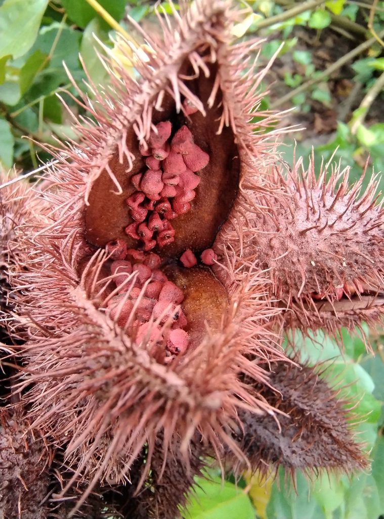Dalam buah kesumba terdapat biji-biji yang tertutup oleh kulit biji berdaging warna merah. Material warna merah yang menyelimuti kulit biji itulah yang sudah lama dimanfaatkan sebagai pewarna. Pewarna ini antara lain untuk mengecat wajah suku Indian. Bahkan pewarna ini di jaman modern ini dimanfaatkan sebagai pewarna lipstick sampai dengan pewarna makanan seperti margarine dan keju. Sehingga nama Kesumba atau ‘Lipstick tree” berasal dari manfaat kulit bijinya ini.