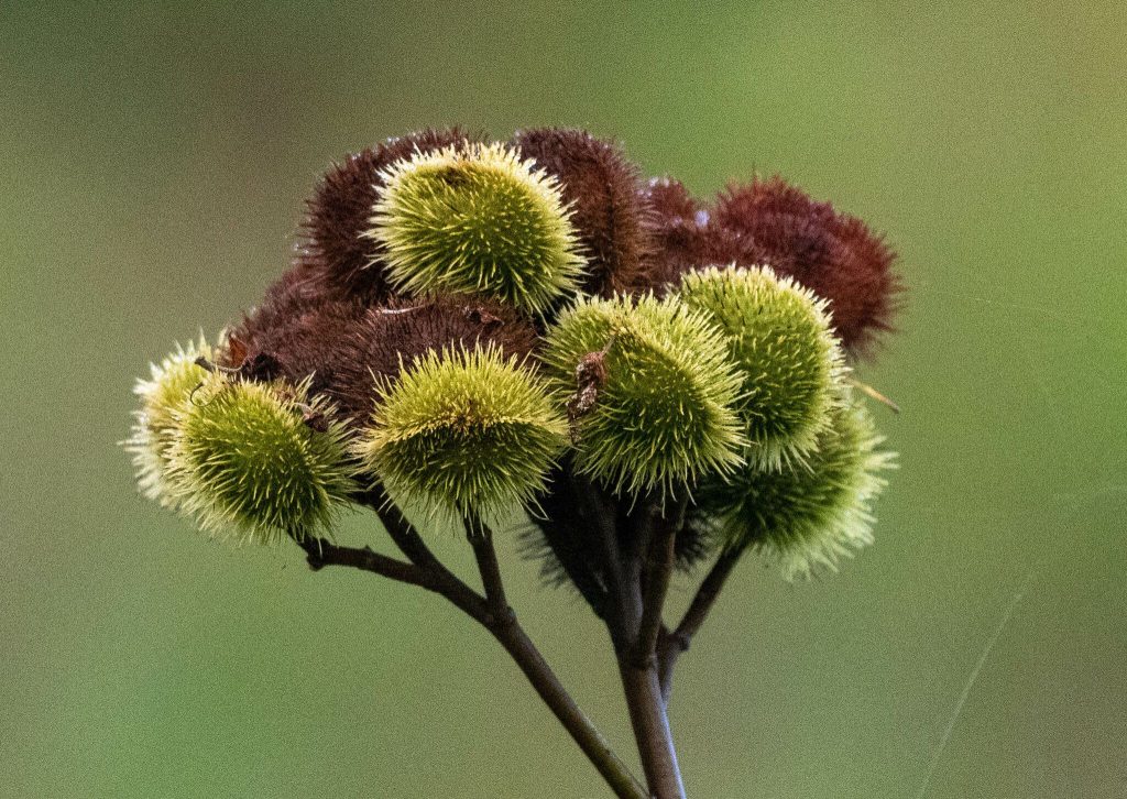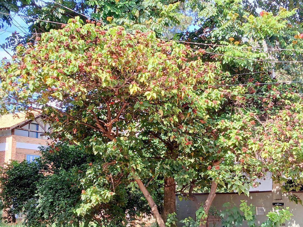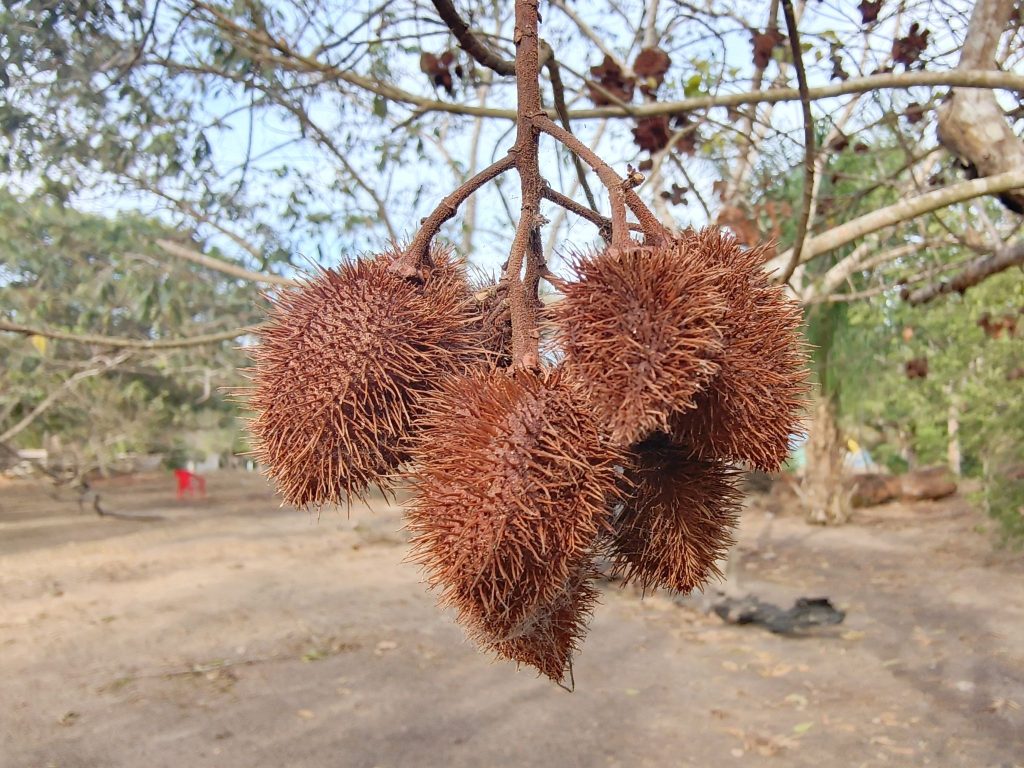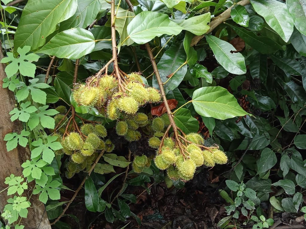 - Buahnya berbentuk bulat telur, panjang 2 – 4 cm dan tertutup oleh rambut sikat warna merah tua menyala. Bentuk dan warna buahnya ini sangat mirip dengan buah rambutan, namun tidak dapat dimakan. Warna buahnya ini bervariasi menurut elevasi, biasanya warna semakin merah dengan semakin tingginya elevasi. Buah ini berwarna hijau saat muda dan merah tua setelah masak, pipih, bagian ujung terlihat merekah sehingga biji-bijinya dapat keluar cepat.