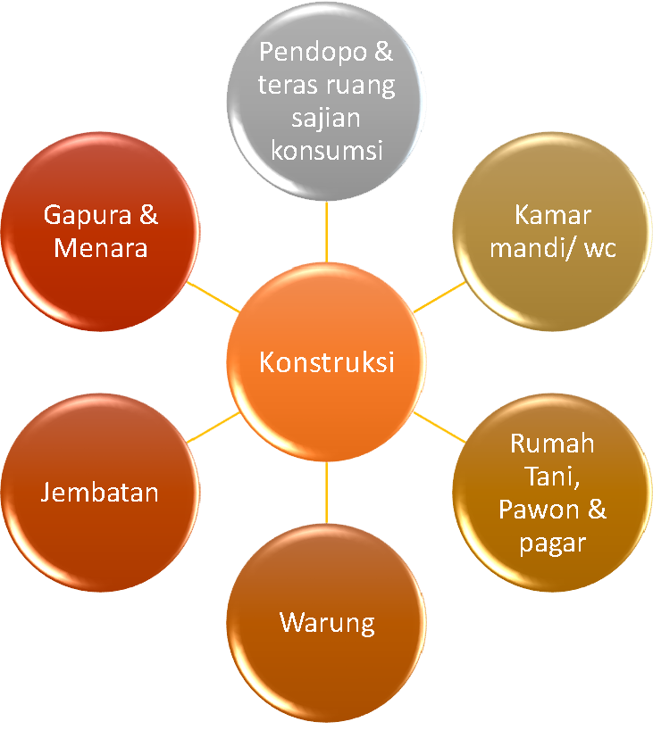 Beberapa contoh konstruksi yang menggunakan bambu, dari rumah, warung, gubug, pos ronda, sampai jembatan, dll.