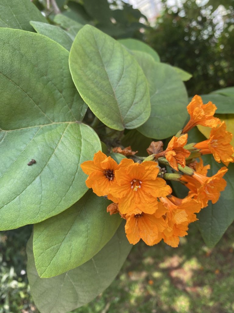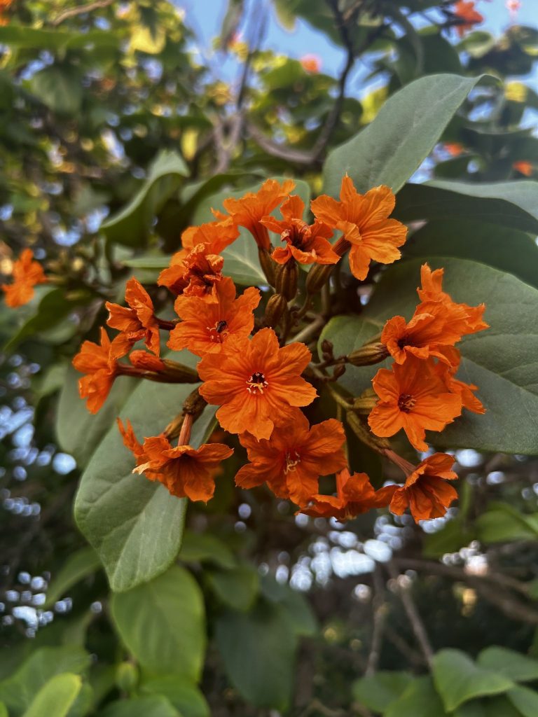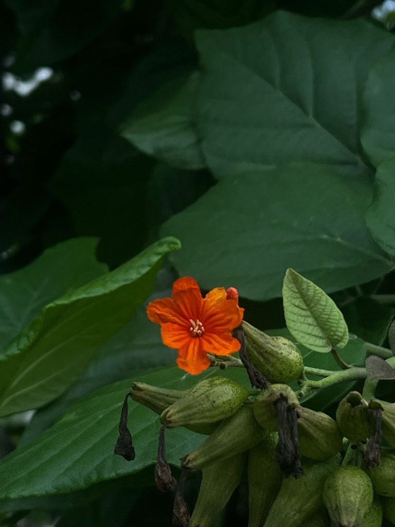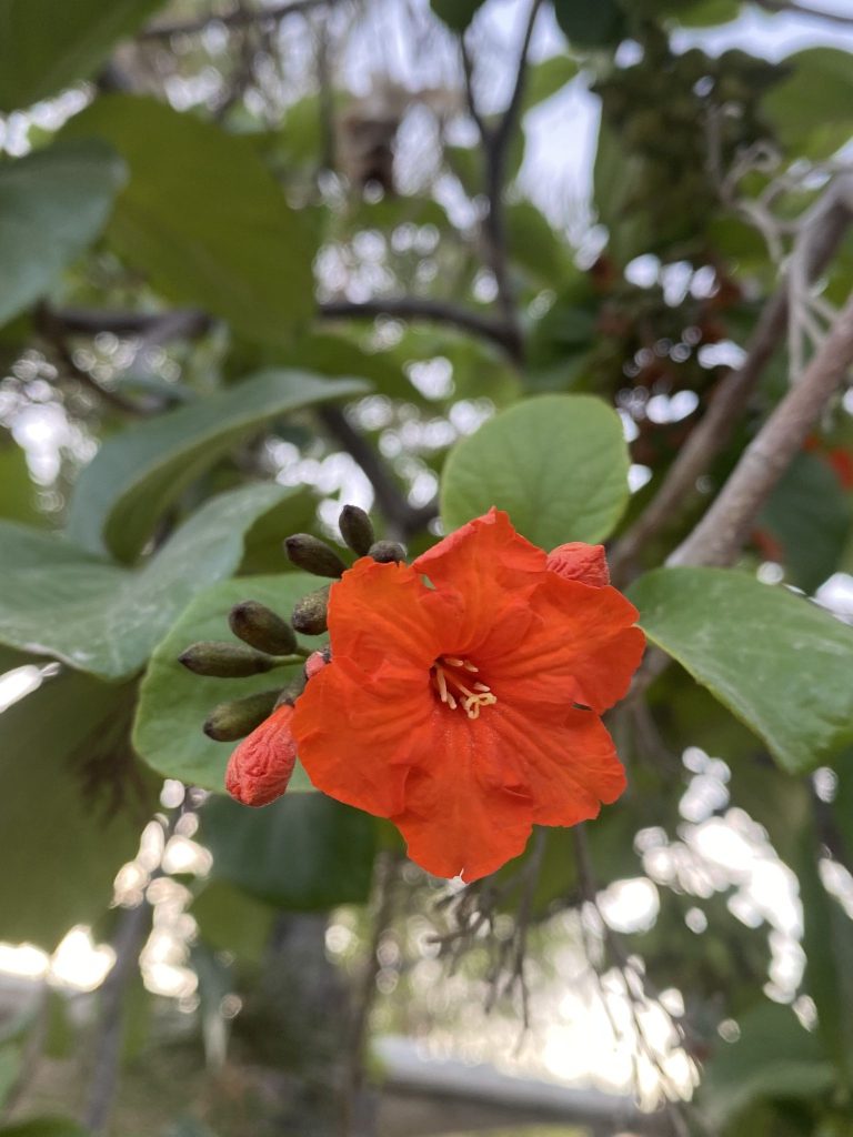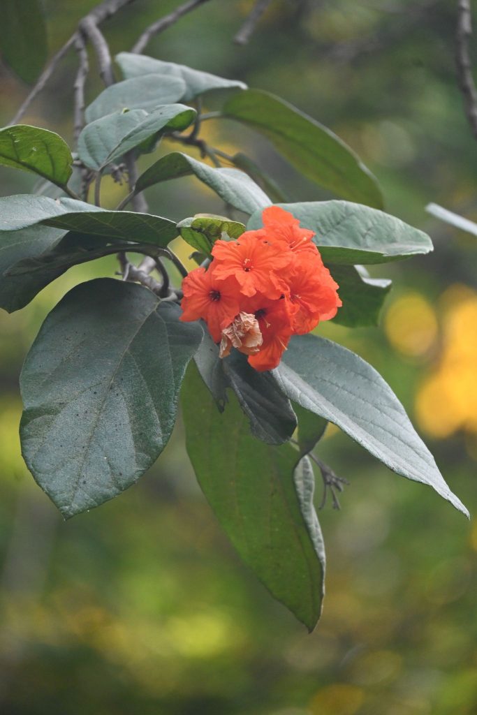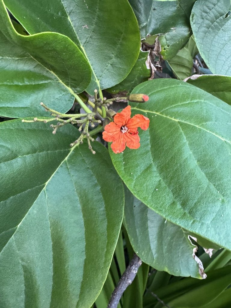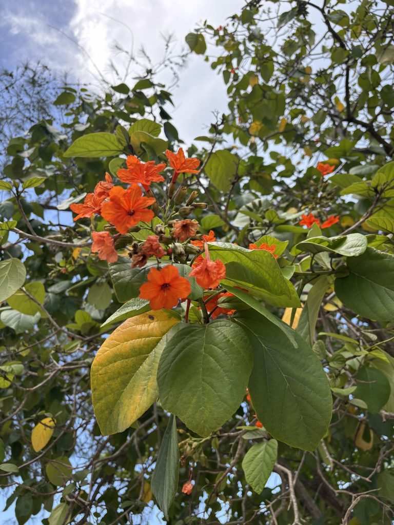 - Ukuran pohon Cordia sebestena umumnya tumbuh hingga 7–10 meter dengan tajuk lebat dan daun tebal berbulu.