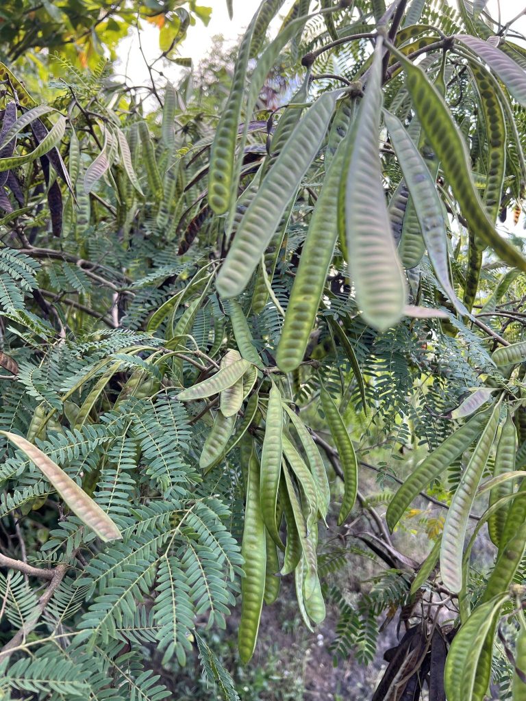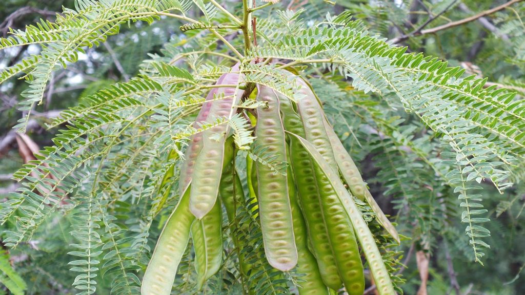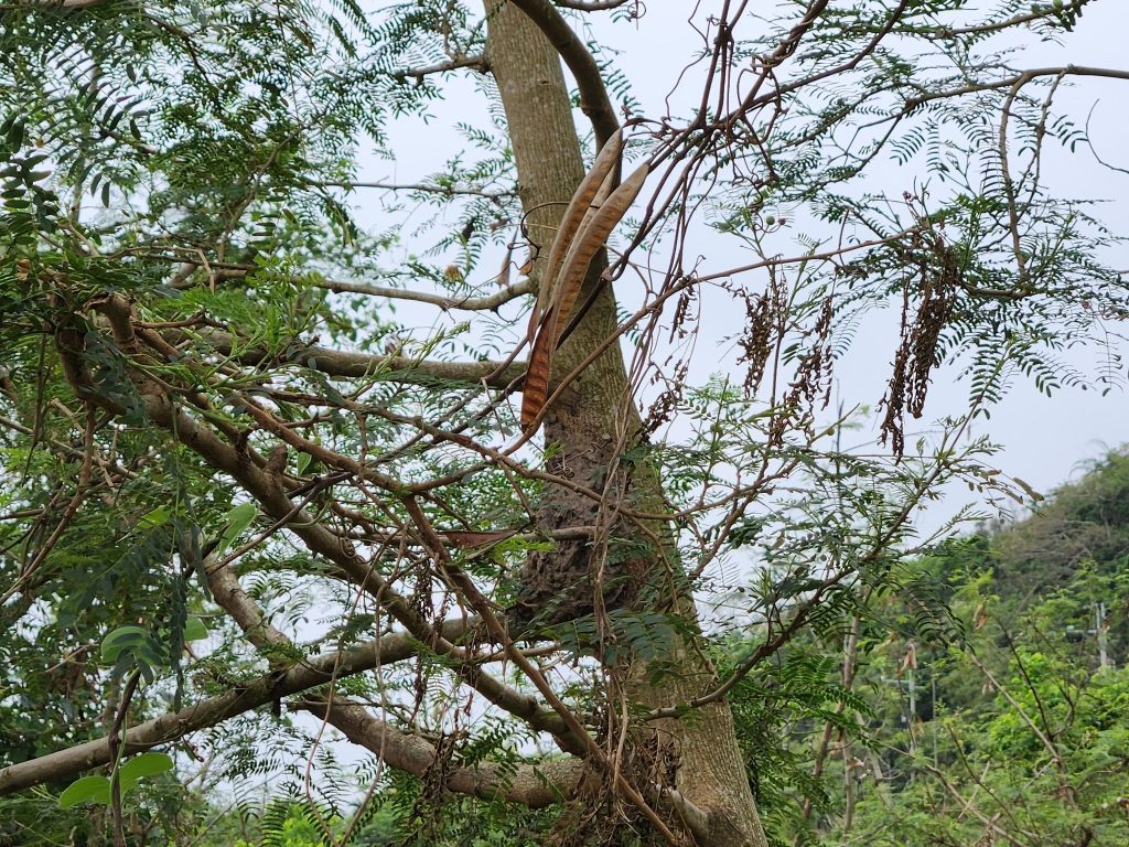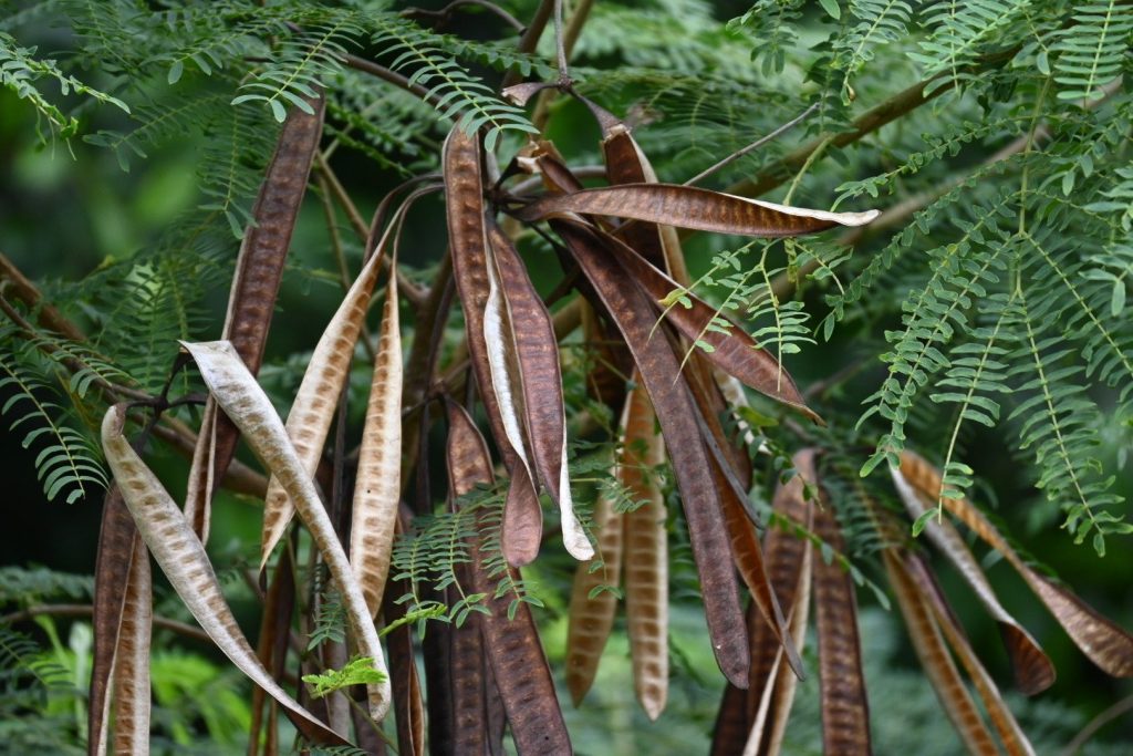 - Buahnya berupa polong pipih memanjang 10-18 cm dengan sekat-sekat di antara biji, hijau dan akhirnya cokelat kehijauan atau coklat tua apabila kering jika masak, memecah sendiri sepanjang kampuhnya. Buah lamtoro mengandung 15-30 biji yang terletak melintang dalam polongan.