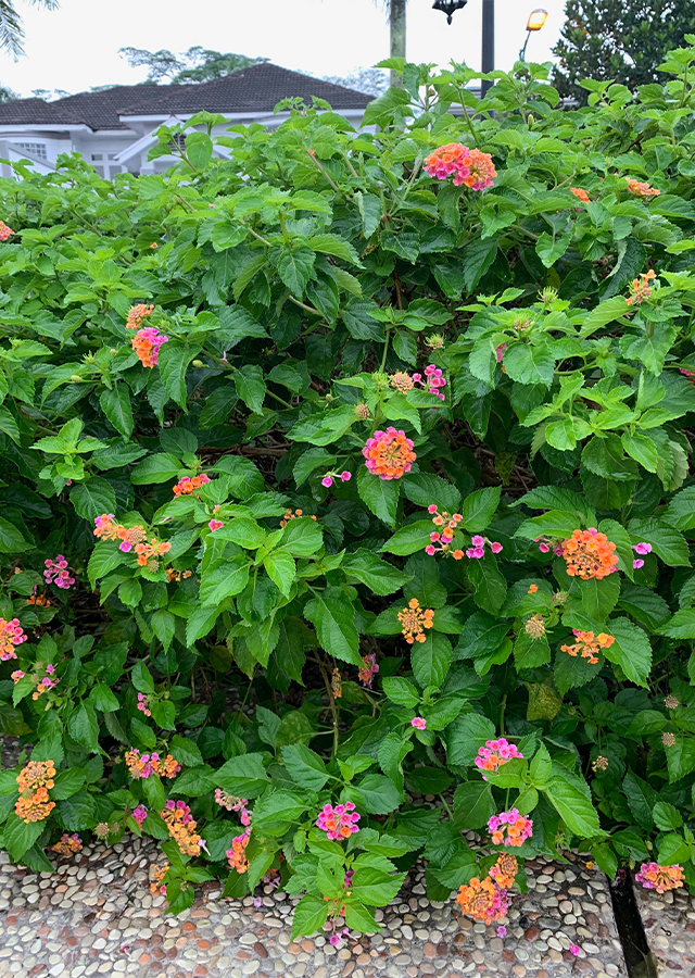 Lantana (Lantana camara L) sering disebut juga “Bunga pagar”, Tahi ayam (Melayu), Tai hayam, Cente (Sunda), Waung, Wileran, Tembelekan (Jawa), Kamanco, Tamanjho (Madura). Lantana ditanam sebagai tanaman ornamental semusim pada wilayah tropis dan subtropis serta pada wilayah beriklim sedang. Lantana oranye merupakan kelompok lantana ‘Spanish flag’ (Bendera Spanyol) karena warna bunganya sama dengan warna bendera Spanyol.Tanaman Lantana oranye liar umumnya memiliki tinggi mencapai 150-180 cm. Tanaman lantana yang dibudidayakan sebagai tanaman hias memiliki tinggi sekitar 30-60 cm dan jika ditanam di tanah dapat membentuk tanaman yang rimbun dengan lebar hingga 120 meter.