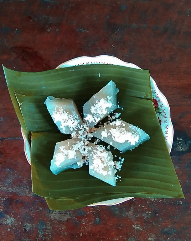 Cara membuatnya pati aren di tos (rendam) untuk menghilangkan kotoran kemudian air dimasak sampai mendidih di campur gula dan aroma dari biasanya. Pandan wangi, setelah pati di cairkan dengan air dingin lalu tuang kedalam air mendidih dengan kadar pati agak banyak biar bisa mengental. Setelah cukup masak di angkat dan dituang pada nampan/baki, di tunggu sampai dingin, lalu di taburi parutan kelapa sebagai penambah rasa gurih. Cara penyajianya adalah di iris sesuai selera di tata dalam piring dan siap disajikan, selain menjadi maskana sendiri juga di pasarkan/dijual.