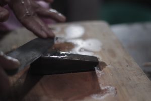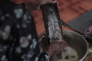 Parutan. Alat yang berfungsi untuk memarut ini paling sering digunakan Ibu Asliyah untuk memarut kambil (kelapa). Meski sekarang sudah banyak alat parut modern, namun beliau tetap menggunakan parut tradisional karena hasilnya lebih halus daripada menggunakan mesin. Cara perawatannya juga mudah, cukup dibilas setelah digunakan dan disimpan dalam posisi berdiri. Selain untuk memarut kambil, bisa juga untuk memarut kunyit, jahe atau ketela.