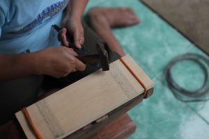Alat yang digunakan untuk membuat parut tradisional yaitu gergaji, parang, palu, tang, tali dan kayu penyangga. Langkah-langkah dalam membuatnya yaitu dengan cara menebang kayu melinjo, lalu saat tiba di rumah kayu tersebut dipasah lalu dipotong-potong menjadi beberapa bagian yang berbentuk persegi panjang. Untuk kawatnya sendiri dibakar, lalu dipotong kecil-kecil. Kemudian kayu yang sudah berbentuk persegi panjang diikat diatas kayu penyangga. Setelah itu kawat yang sudah dipotong kecil-kecil dipegang menggunakan tang dan dipukul satu-persatu sejajar diatas kayu tersebut sehingga berbentuk seperti parut. Untuk pembuatan parut tradisional ini dibuat dalam waktu kurang lebih 30 menit. Dalam sehari Ibu Asnamia bisa membuat rata-rata 12-15 buah parut tradisional.