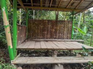 Bapak Yanto (45) asal Dusun Gombong yang sedang duduk-duduk di pos ronda. Pos ronda ini bukan terbuat dari semen melainkan terbuat dari bambu, papan untuk duduk, dan asbes. Bambu yang digunakan untuk tiang pos ronda ada empat sedangkan untuk atap menggunakan sepuluh batang bambu. Bambu-bambu tersebut diperoleh dari hasil sukarela warga setempat. Bapak Yanto mengatakan jika lama pembuatan proses pos ronda dari bambu ini mencapai waktu sepuluh hari. Cara pembuatan pos ronda ini, pertama-tama membuat soko (tiang-tiang penyangga) sebanyak enam batang. Lalu, buat dinding dari potongan bambu yang sudah diukur sama panjangnya. Kemudian rangkai semua batang bambu, papan, dan seng menjadi sebuah pos ronda. Saat malam hari, pos ronda ini belum memiliki lampu penerangan sehingga hanya memanfaatkan lampu jalan yang ada di sebelahnya. Bapak Yanto kerap mengikuti kegiatan ronda yang diadakan secara sukarela oleh warga setempat. Kegiatan ronda beroperasi mulai pukul 22.00 dan biasanya paling sedikit diikuti oleh dua orang.