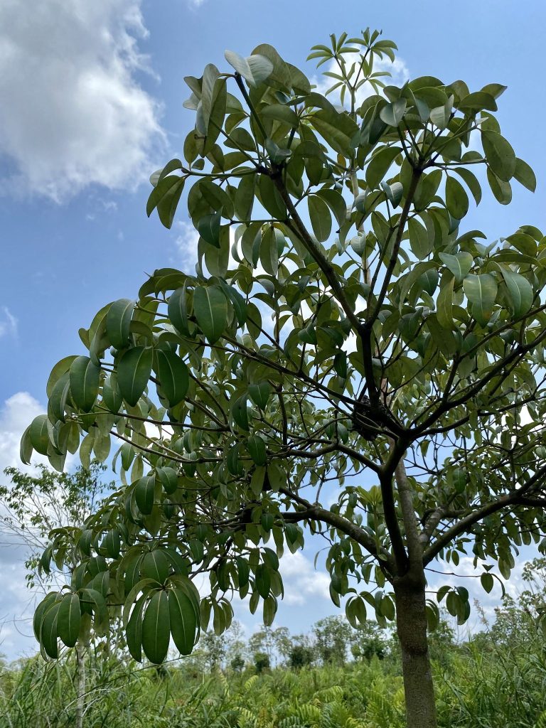- Batang kulit berwarna cokelat terang dan terdapat getah berwarna putih susu pada bagian dalam kulit kayu.