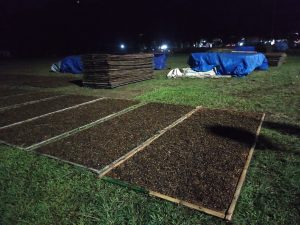 Setelah selesai ngeler, daun tembakau yang sudah tersusun di rigen langsung di bawa ke tanah lapang yang panas untuk dijemur. Kira-kira sampai pero (setengah kering), daun tembakau dibalik (malik), yaitu diganti menjemur daun tembakau di sisi bawah yang belum terkena sinar matahari. Biasanya dilakukan pada jam 9, jam 1 dan jam 3 sore. Aktifitas Njereng ini dilakukan selama 2 hari.