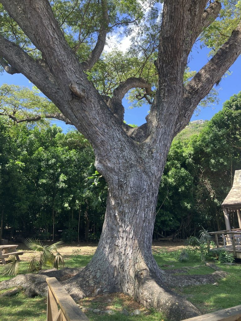 - Tajuk sangat lebar, membentuk payung raksasa (umbrella-shaped canopy). Rentang tajuk bisa mencapai 30–40 meter. Memberikan keteduhan luas, cocok sebagai pohon perindang utama.