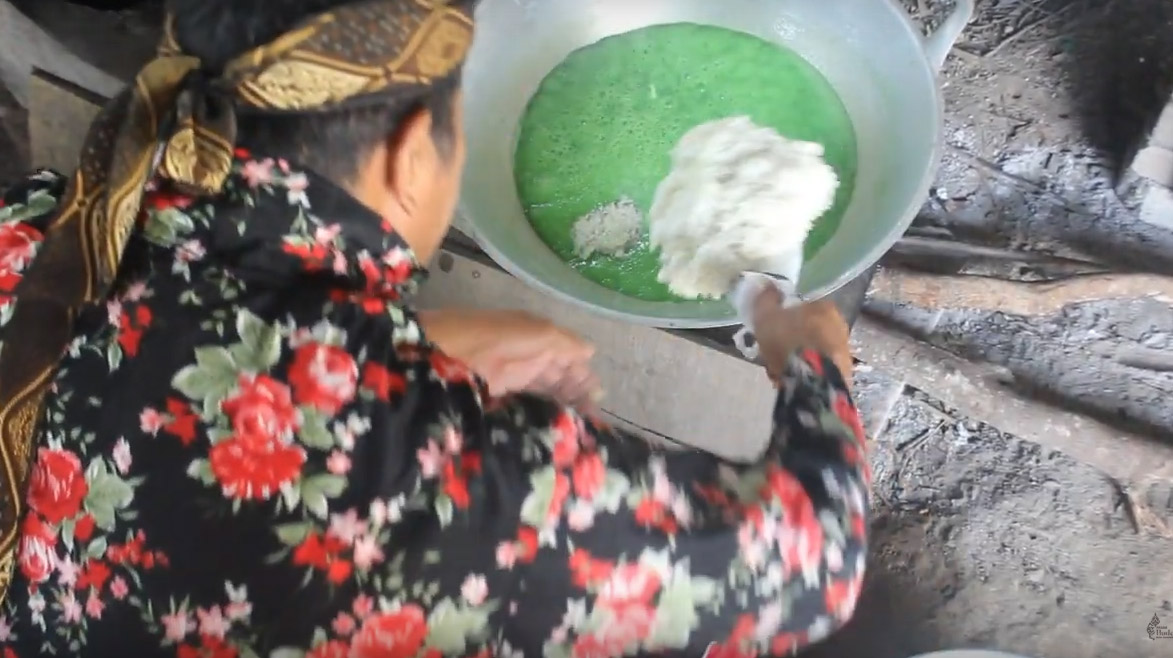 Dimulai dari nggeneni santan, Pak Tam menjelaskan satu per satu. Santan dimasak sampai mblendho kurang lebih selama tiga jam, lalu ditambahkan tepung ketan. Di sini, yang membuat beda dengan krasikan adalah tepung ketan sudah ditambahkan dengan air sampai kental dan berwujud seperti bubur. Setelah ditambahkan tepung kental, santan diaduk selama enam jam sampai menjadi sedikit mengeras.